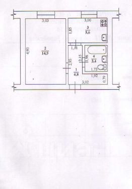 14,9 м²